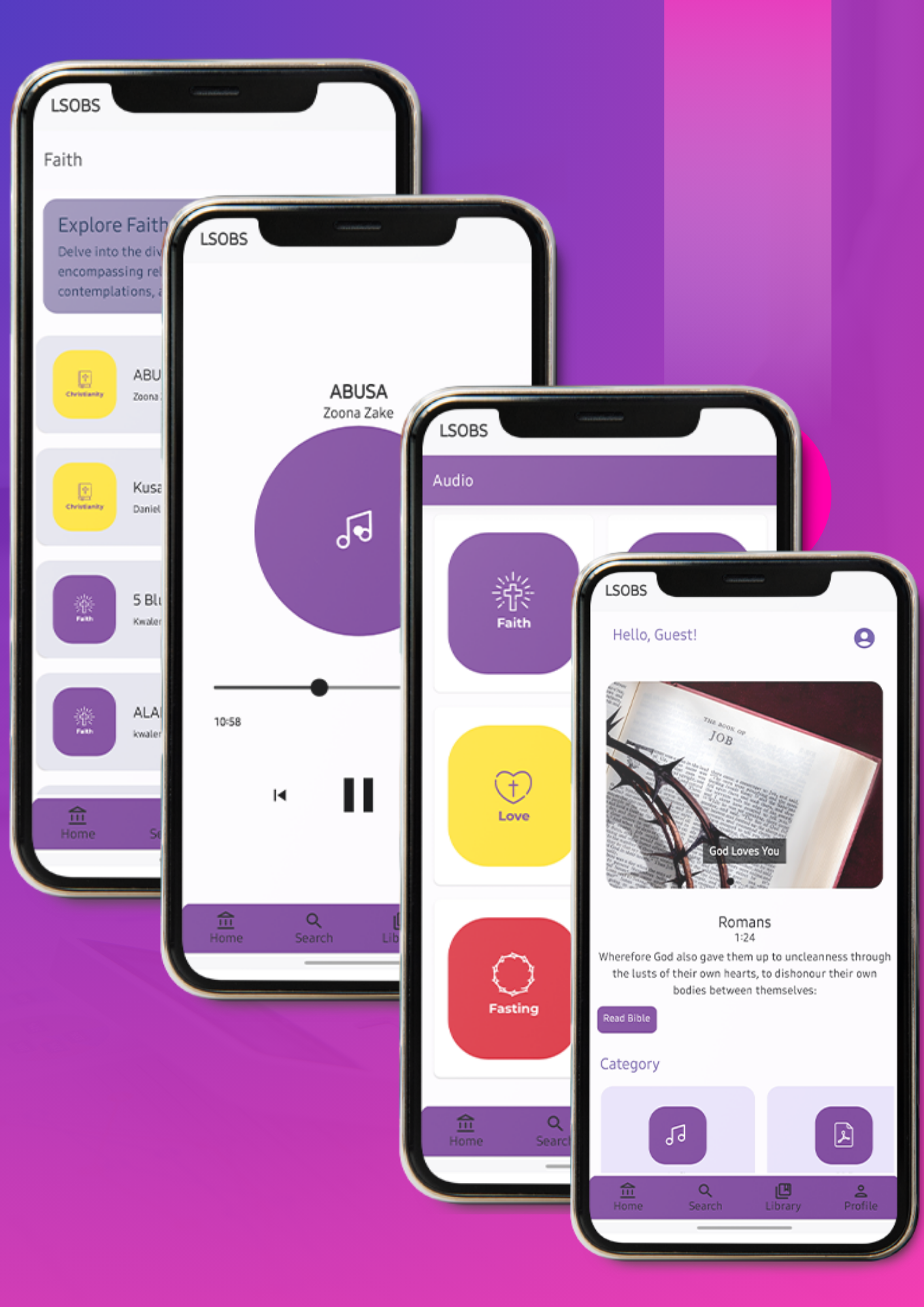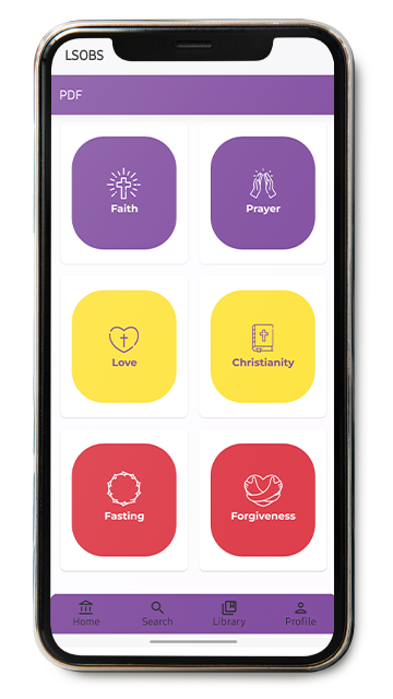Navigate to different study categories (e.g., Faith, Prayer, Love) and access related materials